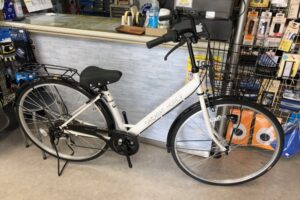 2025年12月17日 ママチャリ系一般自転車サイモト自転車白系オートライト装備6段ギヤ両立スタンド装備キャリア付き19,800~29,999円台27インチ