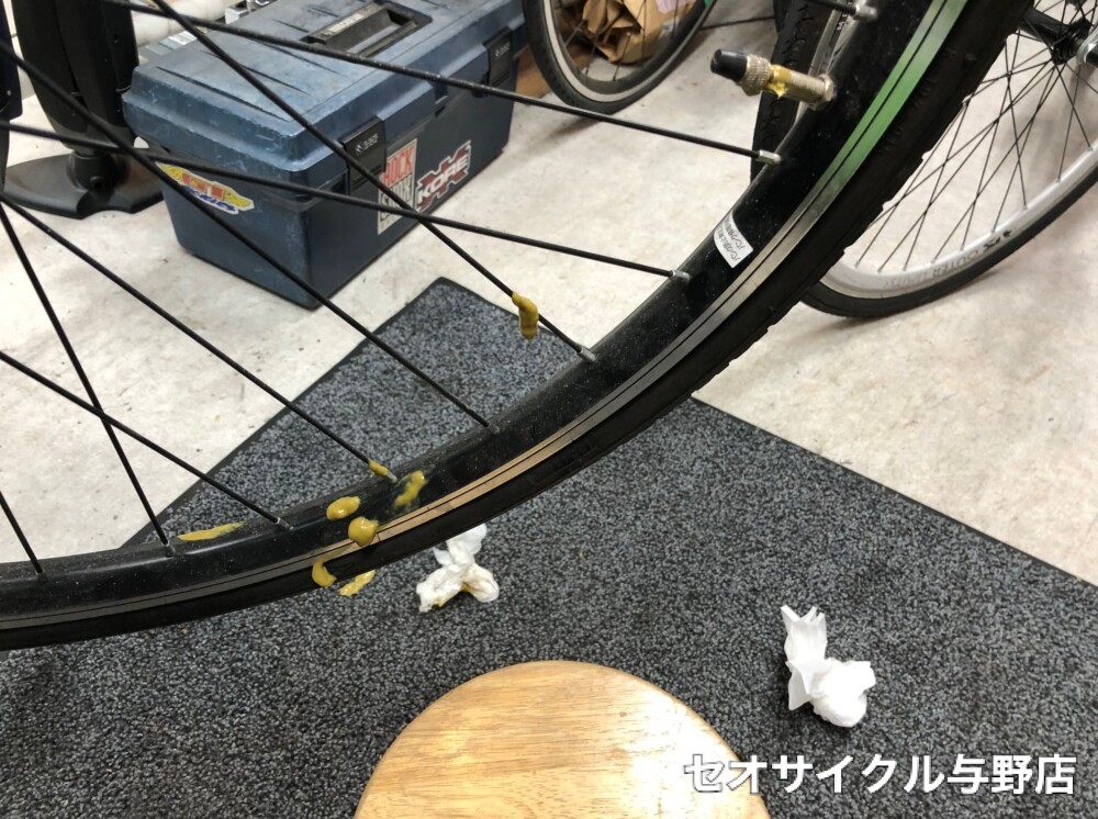 このパンク防止剤の色はまさに・・・