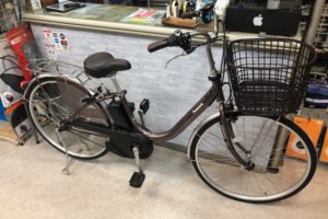 2025年10月3日 キャリア付き盗難補償付き日本製電動自転車サビにくいPanasonic26インチ10万円以上ママチャリ系茶系オートライト装備3段ギヤローラーブレーキ装備両立スタンド装備