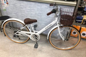 2025年1月11日 アルミフレームジオス一本スタンド装備サビにくい50,000~59,999円台26インチクロスバイク系白系7段ギヤスポーツ車
