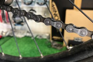 こんにちはセオサイクル与野店です。 先日お持ちになられた”チェーンたるみ修理”の案件。 ざっとチェーン全体を見まわしたところ、コマの破断に気づきました。 立ち漕ぎしたときにきれたら・・・ 考えただけでも恐ろしい。 ケガを …