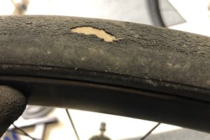 こんにちはセオサイクル与野店です。 最近交換を行ったスポーツサイクルのタイヤ 某、大手メーカーさんのそれなりに値段のするグレードのタイヤ。 ここのタイヤはある程度使いこむと、こんな感じにゴムが はがれる印象がある・・・ …